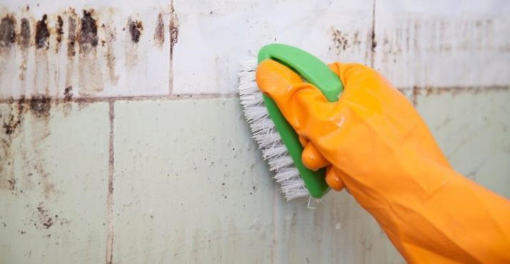 If, nevertheless, the appearance of a fungal colony could not be avoided, it remains only to restrain its development. For routine cleaning, remove any black stain you see immediately. The lesions are treated with special solutions with an exposure of 90 minutes. Then remove the dirt using a sponge.