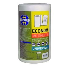 - Meule Econom. Tear-off universal viscose cleaning products. The composition contains additional material - polyester. Products are available in size 22x22 cm. The packaging is very large. There are two packaging options for such products: 100 and 180 pieces. Napkins are white. Perfectly remove dust and dirt, are inexpensive.