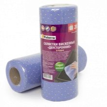 - Paterra "Two Way". An interesting option, which consists of a roll, which includes 20 napkins 25x25 cm in size. On the one hand, the napkins are classic, white in color and with a smooth surface, on the other they have PVC dots that can wipe away stubborn dirt and clean difficult surfaces.