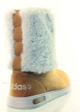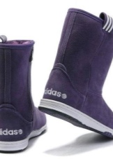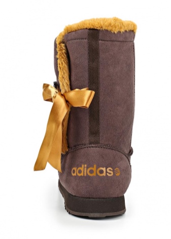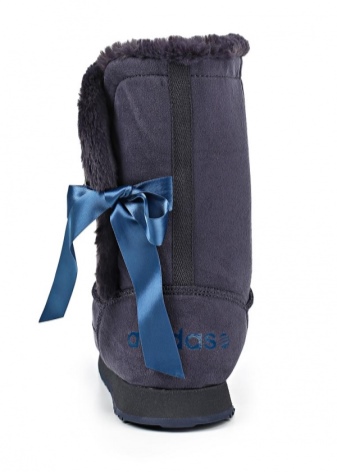 - Adidas winter uggs with a satin ribbon decor look elegant and bright. Such shoes suit young natures, girls who definitely need to be in the spotlight and catch enthusiastic looks on themselves. Choose from blue and brown boots.