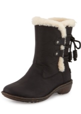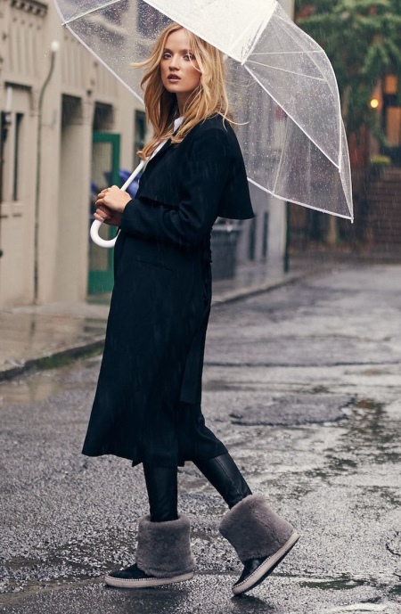 Low specimens are very comfortable and have been at the peak of popularity lately. These shoes are easy to put on. Ugg boots with magnificent fur on the top look luxuriously. Such shoes look expensive and fit perfectly into almost any winter look.