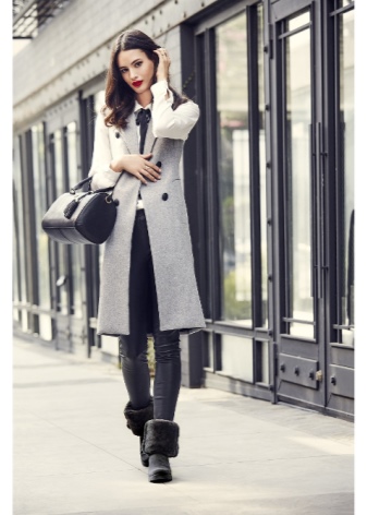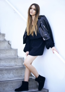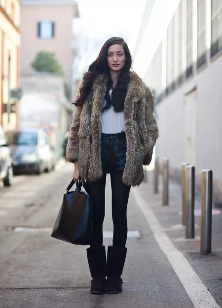 Want to create a youthful and creative image? Then you should know that ugg boots go well with shorts. Such an ensemble will suit bold fashionistas who want to emphasize a bright personality. In the cool season, you can wear tight tights under the shorts.