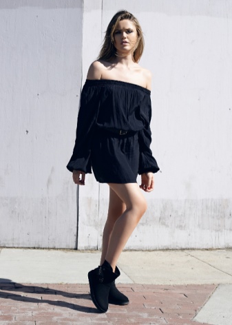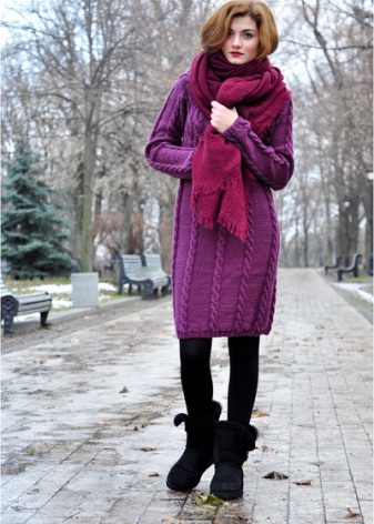 Dark shoes will look great with knitted or crocheted dresses, as well as elongated long-sleeve sweaters. It is recommended to choose a more delicate and feminine outfit. Do not give preference to too long dresses. Ideal is the length of the knee and above.