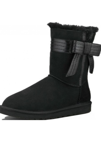Ugg boots with bows look very original and bright. Such a decorative part can be made of leather, suede, ribbon or textile. As a rule, modern manufacturers place bows on the back of the bootleg or on the side.
