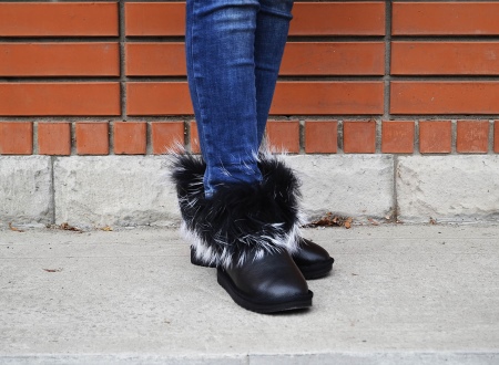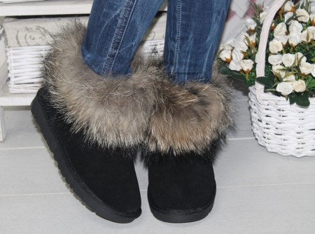 Leather products are rightfully recognized as the most practical and durable. Such shoes do not require special care and for a long time retains its attractive appearance. Black leather models with fox or raccoon fur look very expensive and stylish.