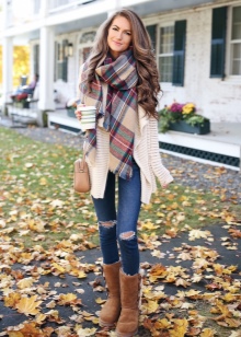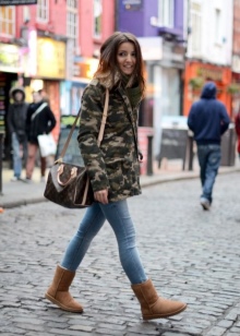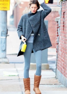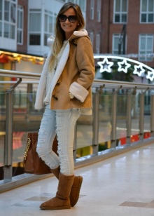 An ideal combination are high uggs with skinny jeans, leggings, leggings. Perfect for skirts and casual dresses.But for wide jeans, a good tandem will be shortened shoe models.