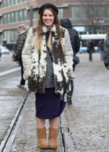 These boots with short fur coats, vests, sheepskin coats and down jackets will look harmonious. With long fur coats, it is not recommended to wear them.