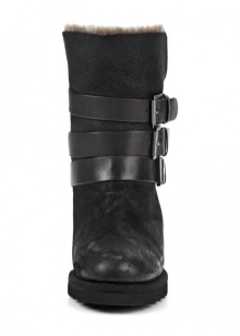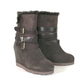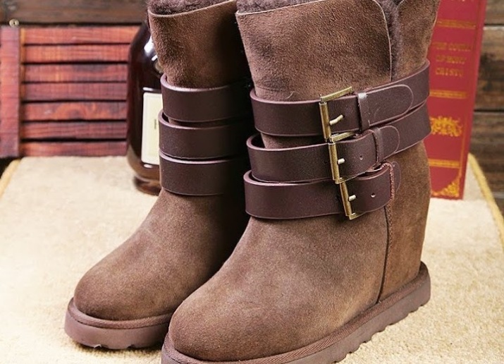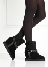 The first company to combine uggs and wedges is Isabel Marant. After that, ugg wedges made of soft suede and natural sheepskin appeared. The shoes have a hidden wedge that makes the female leg elegant. Decorate boots mainly with buckle straps. The sole is resistant and does not slip on ice.