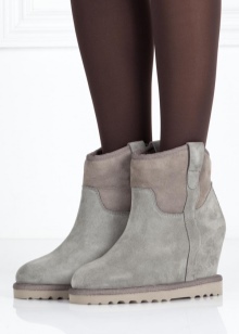 - Comfort and convenience. In winter, it is difficult to walk on icy sidewalks with high heels and stilettos, being afraid to tuck your legs. In ugg boots on a wedge, you can safely move around in snow and ice.