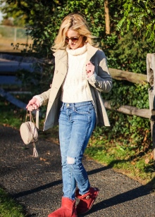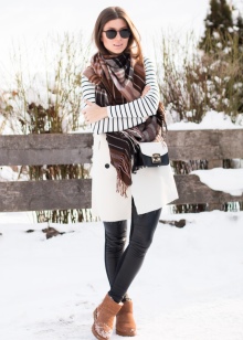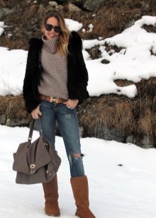 Models with a high top, on the contrary, are ideal for tall girls. They are best combined with short skirts and dresses, shorts and leggings, as well as tunics and long knit sweaters. For people of small stature, it is better to choose high shoes with a fur frill or with a lapel.