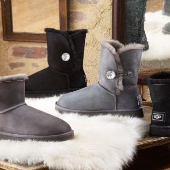 There are a lot of options for women's ugg - these are standard models, and with rhinestones, and with satin ribbons, and with a high top, even ugg boots. All this is designed to allow a woman to combine shoes with any of her outfits.