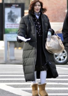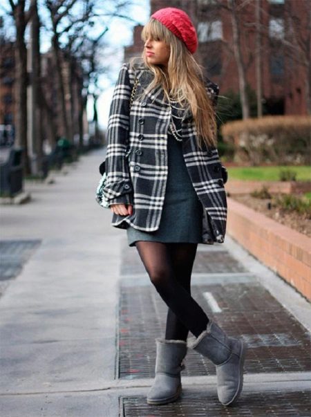 Is it worn with a dress? Why not? It is quite appropriate. Short dresses made of dense materials are perfect. But longer dresses, for example, ankle-deep, to ugg boots will not fit unambiguously.