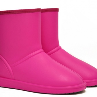 The range of rubberized women's products is quite diverse, so that every girl can choose the most suitable option for herself. Uggs differ from each other in appearance - some models are decorated in bright colors, and others in dark. Some can stand out with the help of decorative inserts and prints, while the rest demonstrate brevity.