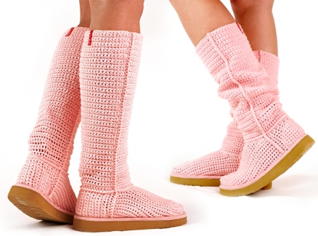 Look good with soft boots, short shorts. The ideal solution for the fall - shorts made of thick material, warm tights of dark colors. Denim shorts and lace knit uggs of all kinds of shades of pink are a wonderful summer option.
