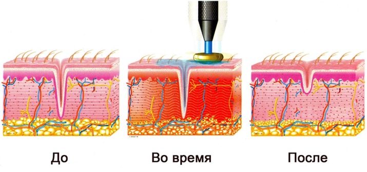The mechanism of action here is as follows: the skin of a person is heated to a predetermined temperature, as a result, the fibrillar fibers become solid and are converted into spirals with a fairly densified skeleton - it is he who is responsible for the connection of cells and determines the elasticity of the skin from the inside. As you know, collagen is a protein, in this regard, under the influence of elevated temperatures, it coagulates, and the skin becomes toned.