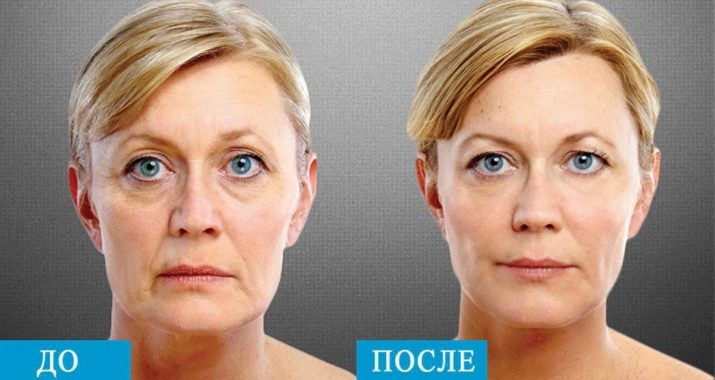 - elimination of facial wrinkles (“crow's feet” in the eye area) and nasolabial folds;
