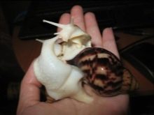 The head, body and sole of the Achatina albino snail are painted white or beige. The shell is brown with a ribbed surface. Often it shows stripes or spots of a darker shade.The shell for all mollusks is the most precious element, with serious damage to which the snail is most likely to die. A shell can reach a size of 20 centimeters, and a body up to 25 centimeters. Albinos grow slower than other species of mollusks, therefore, in size, they also lag behind their counterparts.
