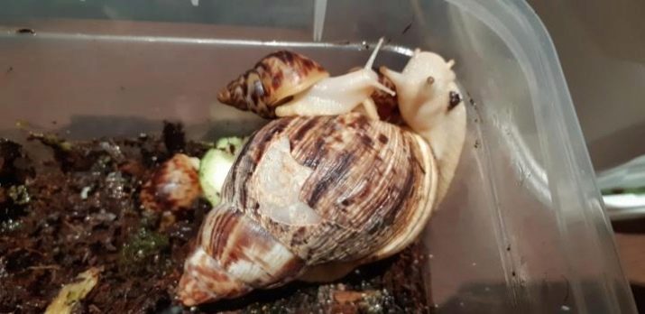 Achatina albinos live in pairs and are hermaphrodites, that is, both individuals lay eggs. The masonry should be carefully monitored, and the kids should live separately from adults, as they can cause enormous damage to the parent's sink. And, most likely, there will be not enough space.
