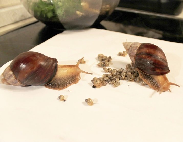 Reproduction occurs when a certain age is reached, while individuals of the same size mate. It also happens that small Achatina mate with a larger relative. Usually a large specimen plays the role of a female.