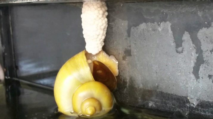 When the calves inside the eggs develop sufficiently, they will gnaw at their confinement and fall into the water. Some aquarists take measures in advance to preserve offspring. For example, noticing that the female has laid eggs, they substitute half of the plastic bottle on this section - and then the hatching snails will fall into the container and be saved from the voracious fish.