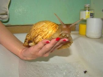 Achatina often has problems with the shell, such as peeling and plaque. To prevent such troubles, you need to bathe your pet.