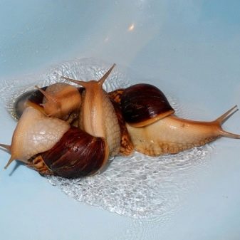 - In order to understand whether Achatina is comfortable in water, you need to observe its behavior. If the animal is hiding in the sink, then something went wrong.