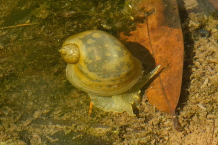 - Spiksi (elf) lives in reservoirs located in the south of America. The shell is light in color with stripes, has an oval and slightly narrowed shape with a diameter of 2-3 cm. The body of the mollusk is spotty, slightly darker than the shell, may be yellow or brownish in color. Lives about 5 years. Included in the ampullar family. It differs from ordinary ampullarium: