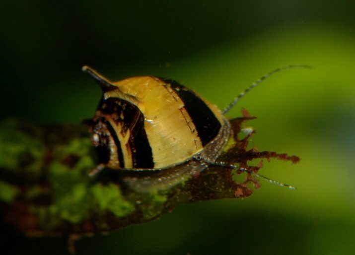 The beautiful and contrasting color of these mollusks attracts many aquarists, as their golden-black carapace blends wonderfully with the green background of the aquarium plants.
