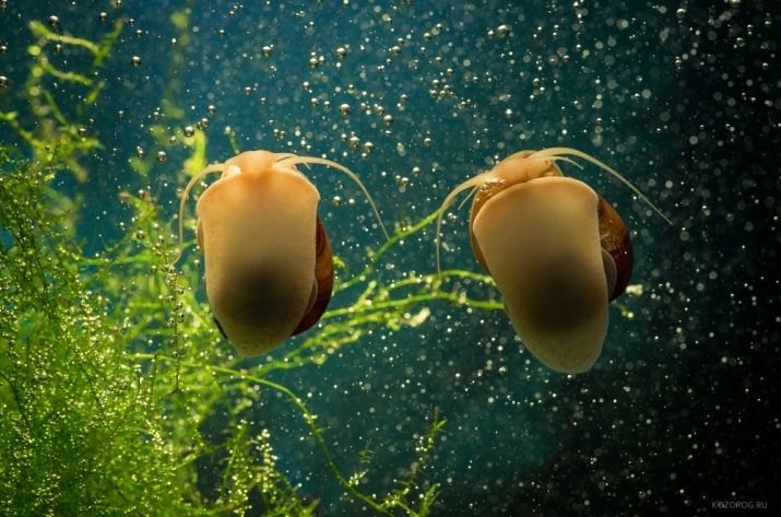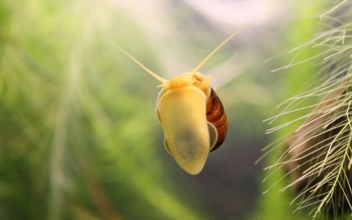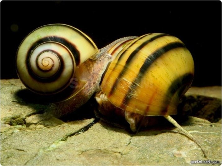 Snails kept with fish need no special care, since they pick up pieces of food after fish, both waste and algae are used. It is advisable to constantly monitor their number - for 5-6 liters of water contain one large or 2 small snails.