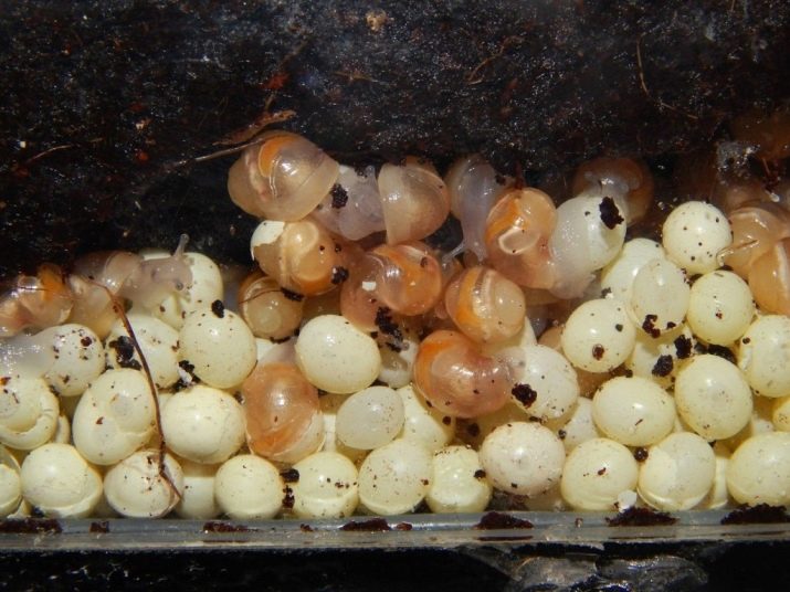 This was proved during a scientific experiment, during which scientists found that newly hatched babies feed on the shell of their eggs. Their young, but sufficiently strong and numerous teeth are able to grind solid food and send it to the esophagus. Their snails eggs are buried in the ground, therefore, after a complete shell-eating, the babies get to the surface and begin to eat on an equal basis with adults. By this time, the strength of the teeth already allows them to eat hard apples and hard grass.