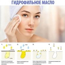 - We treat dry skin with hydrophilic oil (0.5 tsp will be enough), massaging it for 2 minutes. We do it gently, delicately, move along the massage lines, do not pull the skin. After the allotted time, we wash off the substance.