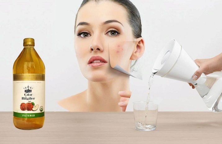 - Using apple cider vinegar. This is not quite washing, but rather a compress. What you need to do: first cleanse your face, then make a steam bath (3-5 minutes) to open the pores. Then take flaxseed rags, moisten it in a pre-prepared solution of apple cider vinegar (0.5 l of water per 50 g), squeeze a little and put on the face, covering with a warm towel. Wait 5 minutes, remove rags, wash your face with water at room temperature.
