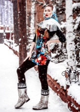 Ethnic style is the main one when creating interesting images with major high boots.