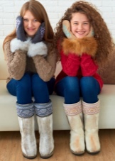 For men, this may be the image of a polar explorer or a hunter. By the way, hunting in the cold season to wear such shoes is both appropriate and practical. And also for country trips to the countryside. We combine high fur boots with a parka or sheepskin coat, trousers made of rough fabric, a large knit sweater and a warm hat. It all looks courageously complete, but in practice it turns out to be functional.