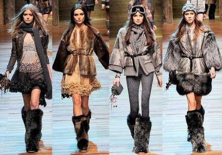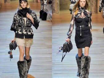 For women and children, you can create very cute images with fur coats, sheepskin coats and warm jackets. A bow can resemble the heroes of folk tales, for example, the Snow Maiden. Traditionally, major high boots are perfectly combined with knitted things with an ornament - from sweaters to dresses. As an accessory, you can choose a fur scarf to match the shoes.