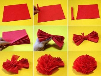 At the first stage, an “accordion” is assembled from a long and wide paper tape. Its width depends on the desired size of the petals. The more folds, the more magnificent the flower will turn out.