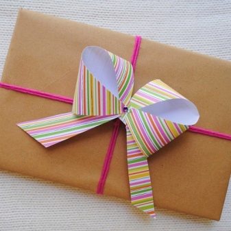 Attaching a finished bow for a gift is easy The main thing is to choose an element that is suitable in color, shape and size. Specialized outlets offer a wide range of similar products. As a rule, they are made of gift paper ribbon, which is characterized by a variety of shades, patterns and shapes.