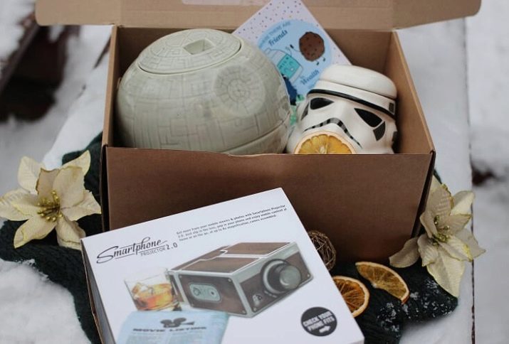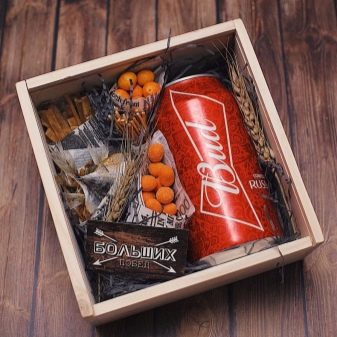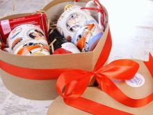 Each man will definitely appreciate the box, in which there will be not only a can of beer, but also a variety of snacks, nuts and chips. And for a movie connoisseur, you can fill the box with the following: popcorn, a can of your favorite drink, chips and a disc with a selection of your favorite films. A lover of a healthy lifestyle will definitely appreciate boxing, in which there will be a sports bottle, an expander, a personalized T-shirt, fitness bars and so on.