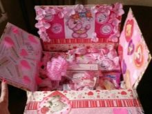 A gift box for a girl can be filled with her favorite sweets, beautiful accessories in the form of hairpins and elastic bands. You can also put a small doll or a stuffed toy.