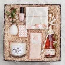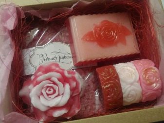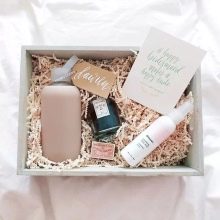 In that case, if you are afraid not to guess with the choice of cosmetics or creams, it is better to fill the box with something neutral. For example, you can put handmade soap, aromatic oils, bath bombs, and bottles with sea salt in a gift box. And you can add a present with a small terry towel.