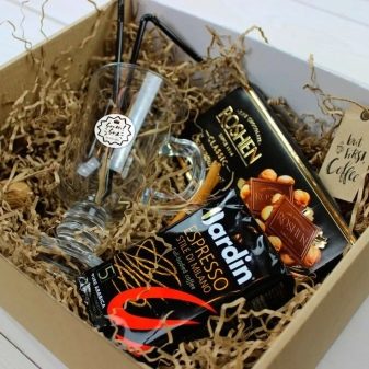 Besides, You can collect a special set that will appreciate the coffee lover of any age. In a gift box, you should put a personalized mug, a jar of aromatic coffee and chocolate. The same set can be assembled for a tea lover. And chocolate can be replaced with delicious cookies or unusual jam.
