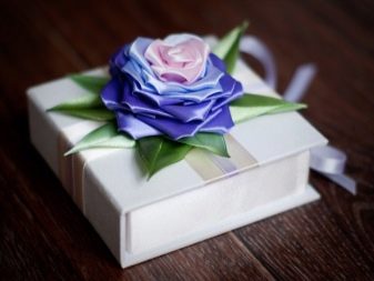 - If the box is pure white, does not contain any inscriptions and stamps, you can leave it like this by wrapping it with a beautiful red or gold ribbon and gluing a huge bow on top. You can also attach a name tag or postcard to it - finished or made with your own hands. A bow can also be made with your own hands from a beautiful wide ribbon or fabric. The technology of the original double bow ties can be found on the Internet. You can also learn not only how to make bows, but also flowers from fabric, decorating them with a box. A huge fabric or paper flower is a great decoration for a presentation.