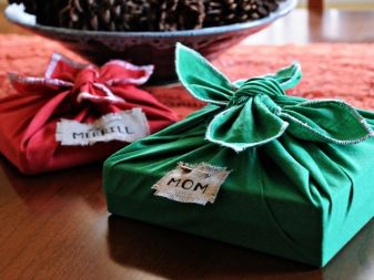 - If appropriate, you can put the gift in a packing bag. For example, if the addressee is a child, and the holiday is New Year's. You will have to sew the bag yourself or order it at the studio, but it's worth it. Firstly, the packaging will be an additional gift, and secondly, this is a truly exclusive option. For those who are completely lazy or who have delayed the purchase of a gift and have absolutely no time, you can offer this option - buy a piece of fabric that is suitable in size, place a presentation in its center, connect the ends at the top and tie a beautiful bow.