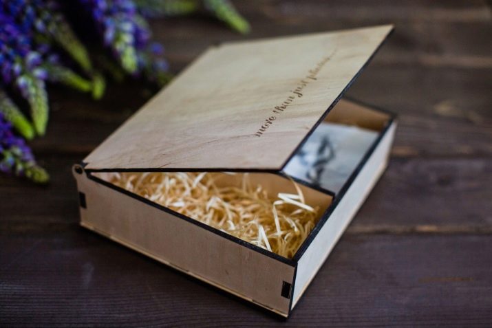 A box of wood can be made in the form of a small chest, a cute casket, a carved casket, or a small cabinet with opening sashes. Such gift wrapping will serve as an addition to the main gift, because later it can be used separately from the present. For example, in such a container, it is good to place jewelry and accessories for storage.