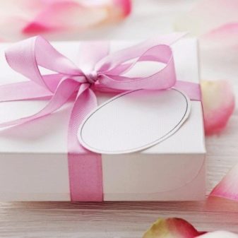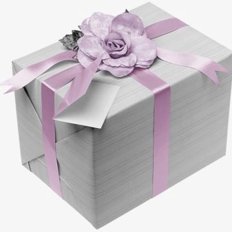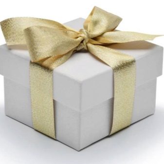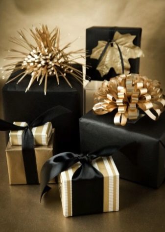 Most often used to decorate boxes and packaging. If you fully arrange the gift in such brilliant colors as gold or silver, then this will be a bust. To call such a package stylish or elegant will be difficult. But ribbons, flowers, engraving or other decorative elements in these colors look very relevant and festive.