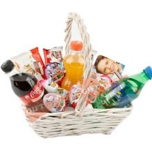 - If a gift basket is selected for the child, then it should not be too large. Kids love variety in everything, so it's best to choose a few small gifts that will surely captivate the baby. Often in children's baskets they put sweets, chocolates, toys and fruits. A good addition will be a disc with your favorite movie, game or cartoon child. Such a present will surely please the baby.