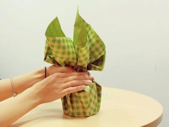 So, to create an original DIY gift bag, you will need foil or any other wrapping paper (this is used in flower shops for packing flowers). You can choose transparent paper or colored paper (plain or with patterns). In the second case, it will be possible to keep the intrigue to the last.