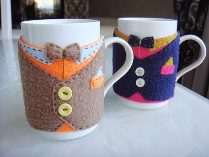 If you have creative abilities, and also know how to knit or sew, then you can independently create a special cover for the mug as a gift. Obviously, in this case there are no restrictions.