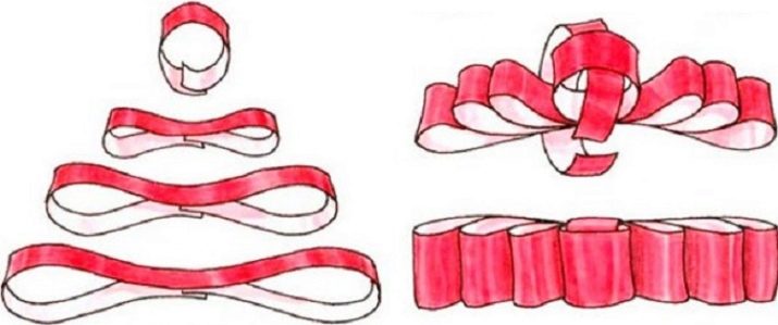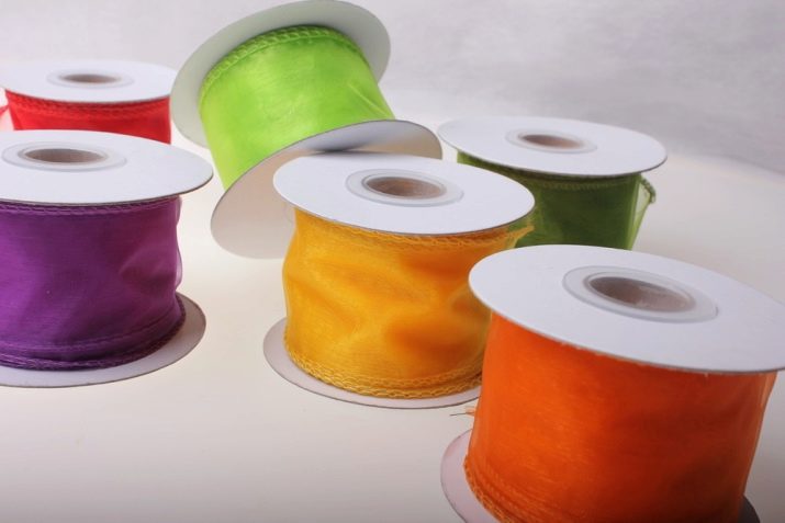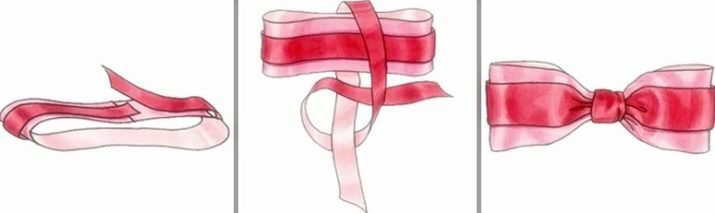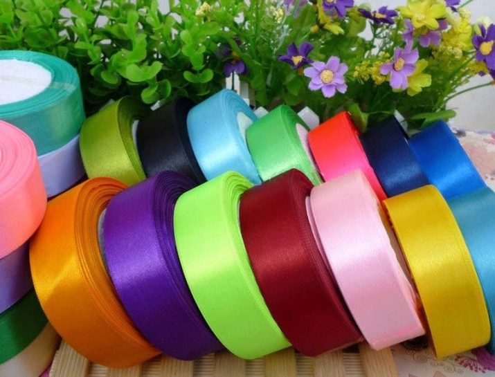 - use already three small satin ribbons with different lengths and colors; combine them with each other, starting with the narrowest;