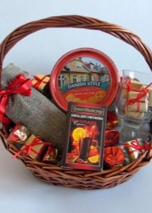 - Basket. Very effective option. Use any basket that can be decorated according to the chosen style. Just put a present in it.